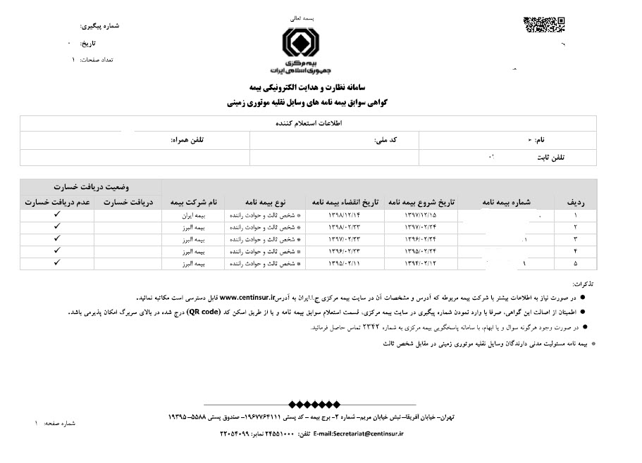 نحوه دریافت سوابق بیمه منجمله سوابل بیمه شخص ثالث و بیمه بدنه: